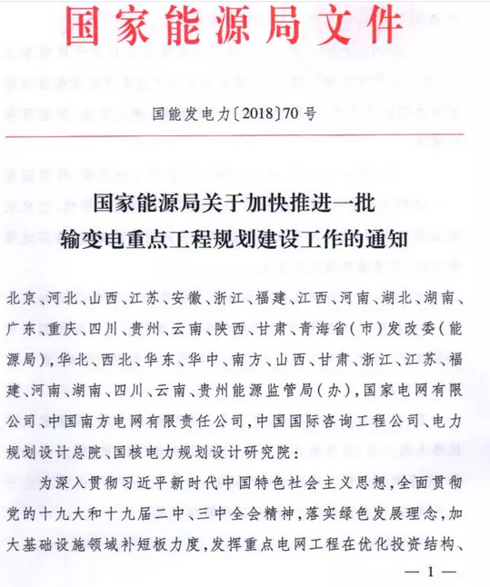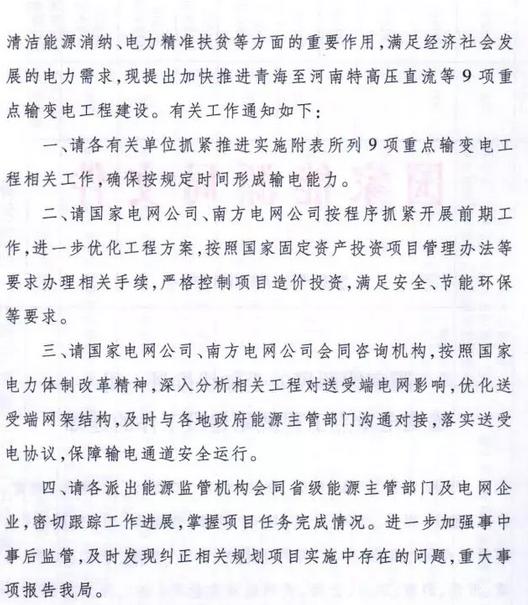 9月7日獲悉,國家能源局印發(fā)《關(guān)于加快推進(jìn)一批輸變電重點(diǎn)工程規(guī)劃建設(shè)工作的通知》國能發(fā)電力〔2018〕70號,《通知》指出,為加大基礎(chǔ)設(shè)施領(lǐng)域補(bǔ)短板力度,發(fā)揮重點(diǎn)電網(wǎng)工程在優(yōu)化投資結(jié)構(gòu)、清潔能源消納、電力精準(zhǔn)扶貧等方面的重要作用,加快推進(jìn)青海至河南特高壓直流、白鶴灘至江蘇、白鶴灘至浙江特高壓直流等9項(xiàng)重點(diǎn)輸變電工程建設(shè),合計(jì)輸電能力5700萬千瓦(工程見附件)。