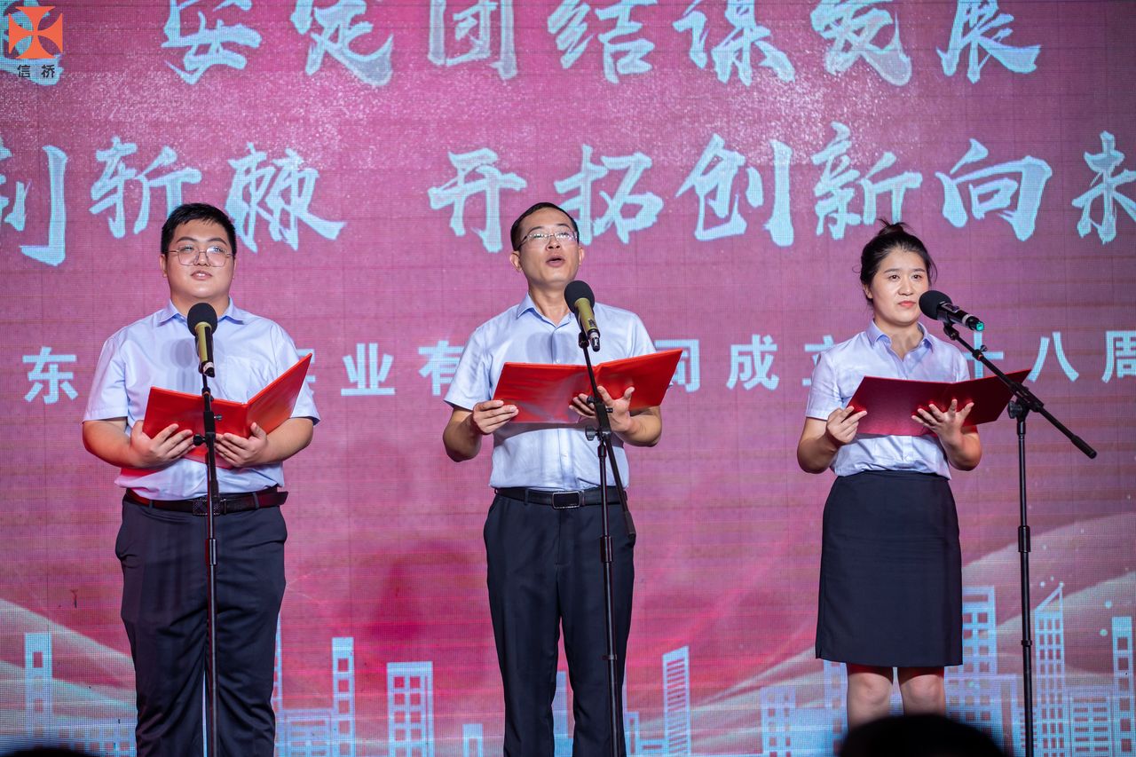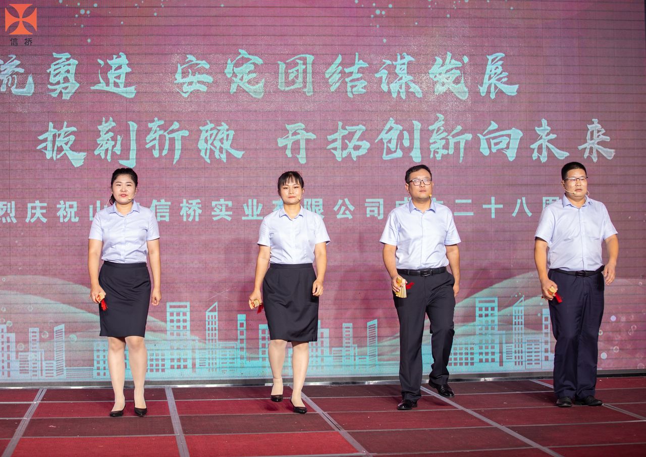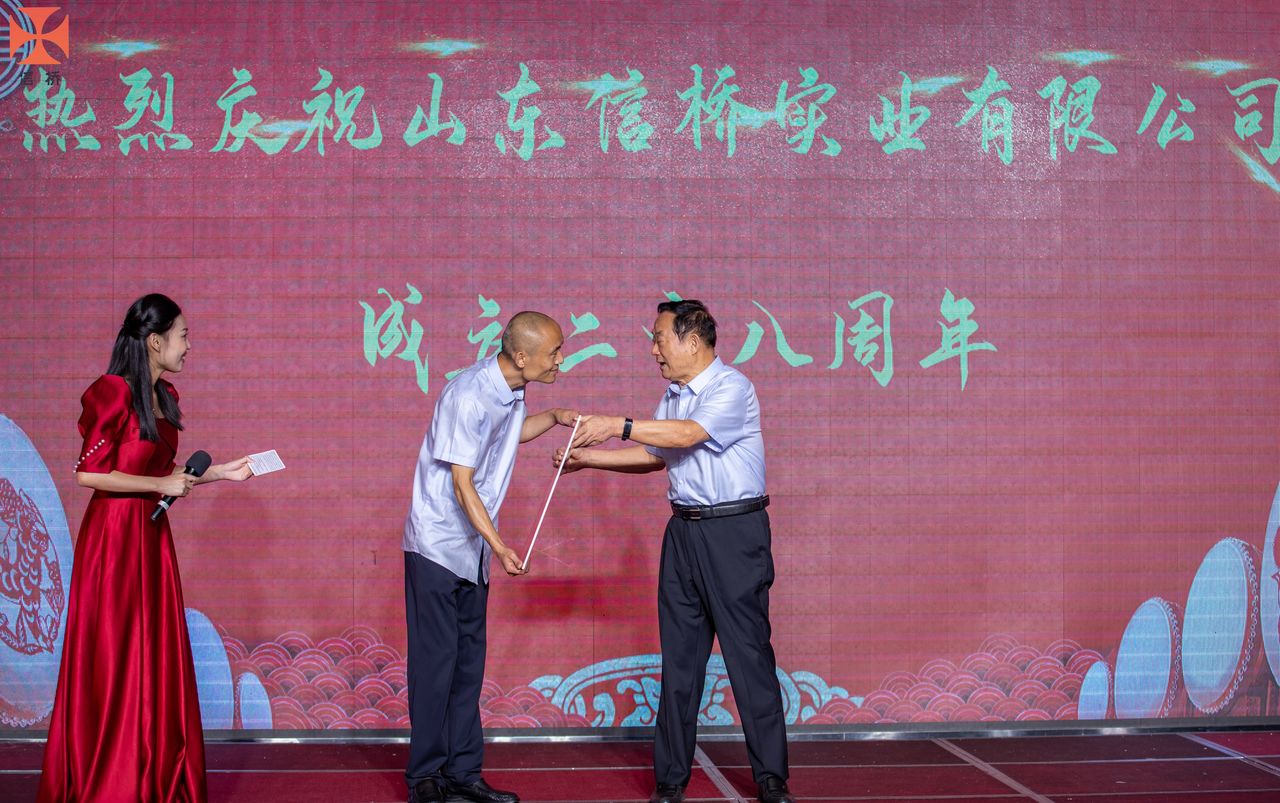 歲月如歌,風(fēng)霜如畫,二十八年彈指一揮間,山東信橋?qū)崢I(yè)有限公司(以下簡稱山東信橋)迎來了二十八周歲的生日。二十八年來,信橋人在激烈的市場競爭中奮力拼搏、砥礪前行,接受了市場風(fēng)風(fēng)雨雨的洗禮,取得了累累碩果。為了慶祝這一特殊的日子,2022年8月8日,以“激流勇進(jìn),安定團(tuán)結(jié)謀發(fā)展 披荊斬棘,開拓創(chuàng)新向未來”為主題的山東信橋二十八周年慶典活動在寶盛大酒店舉行。