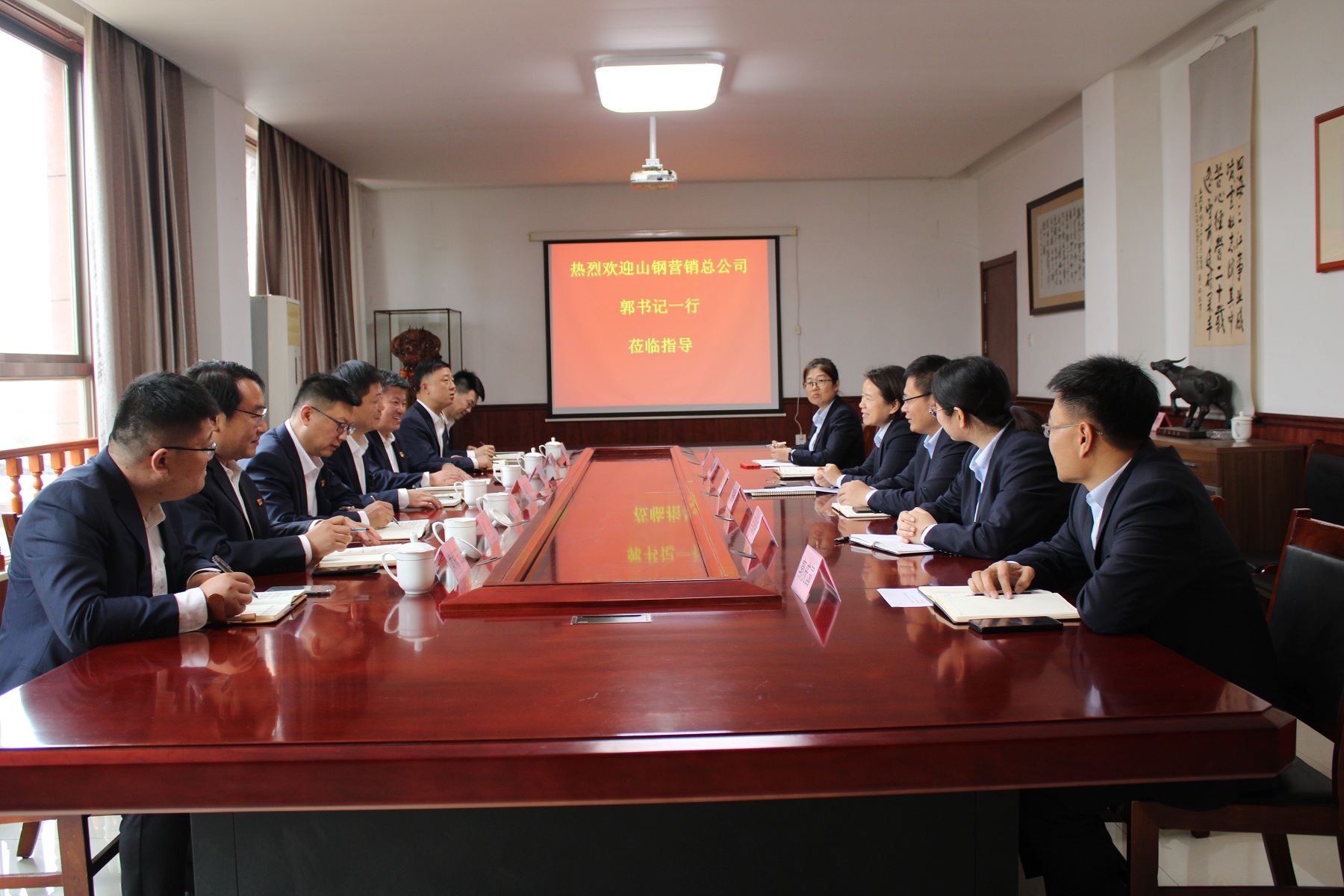 郭書記一行與信橋領(lǐng)導(dǎo)在二樓會(huì)議室進(jìn)行座談,雙方就貨價(jià)、質(zhì)量品控等問題做了深刻交流,重新確定了山鋼與信橋的戰(zhàn)略合作關(guān)系,雙方就今后深化合作,達(dá)成一致意見。