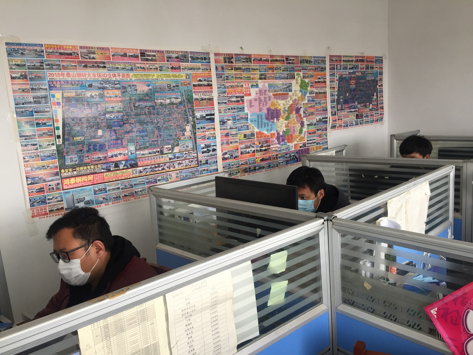 Third, office workers wear masks to work